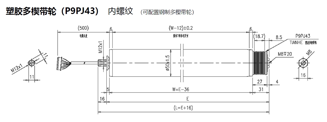 電動(dòng)輥筒 塑膠多楔帶輪(P9PJ43) 內(nèi)螺紋 (可配置鋼制多楔帶輪)